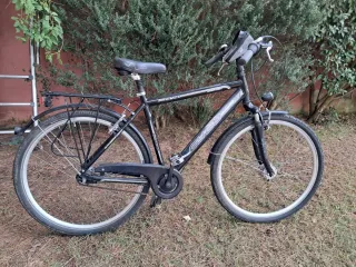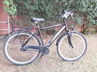 Bicicleta de hombre en color negro. - Cuadro de aluminio. - Ruedas de 28 pulgadas. - Portabultos trasero. - Guardabarros. - Sillín cómodo.