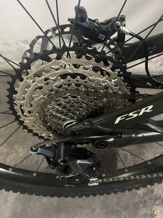 Bicicleta de montaña Specialized Epic FSR Comp. Talla L - Cuadro de aluminio. - Suspensión delantera y trasera. - Frenos de disco hidráulicos. - Ruedas de 26 pulgadas. - Le puse hace tiempo sillín y pedales de paseo, pero la vendo con estos y con los suyos originales. También va con timbre, portabotellas e inflador compacto. - En muy buen estado general, solo a falta de una limpieza y puesta a punto al haber estado guardada un par de años. - Entrego en Conil