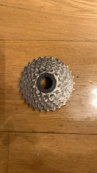 Casete de 8 velocidades en perfecto estado. Lo puedo entregar con este cierre rojo o negro ver última foto - Compatible con sistemas de 8 velocidades. 32 dientes por 11 dientes