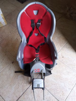 Silla para bicicleta de niño de la marca Hamax. Diseñada para el transporte seguro de los más pequeños. - Color rojo y gris. - Incluye arnés de seguridad. - Soporte para montaje en la bicicleta.