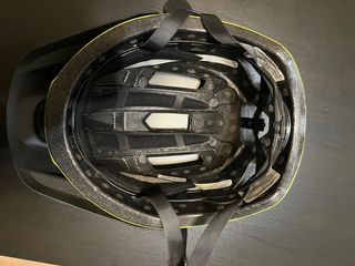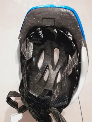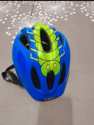 Casco de bicicleta para niños con un divertido diseño de oruga. - Color azul brillante. - Diseño de oruga verde con detalles amarillos. - Correas ajustables para un ajuste seguro. - Múltiples ventilaciones para mayor comodidad.