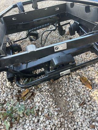 Portabicicletas original BMW para bola de remolque, pero compatible con cualquier coche que tenga bola estándar. No es exclusivo para BMW. Detalles: • Anclaje universal. • Capacidad 47,5 kg (hasta 2 bicis). • Con luces, conectores y sujeciones completas. • Referencias BMW: 82 72 2 157 691 / 82 72 2 237 733. • Muy estable y de alta calidad. • Estado: usado pero en buen estado y listo para usar. Perfecto para transportar bicis de forma segura y sin complicaciones. ⸻ Si tienes dudas, escríbeme sin problema 😉🚲✨