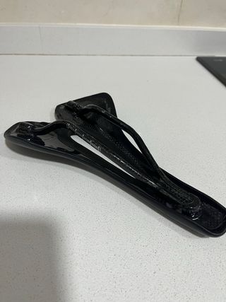 Sillín de bicicleta de carbono ligero. - Peso: 133 gramos. - Diseño ergonómico con canal central. - Rieles de carbono.