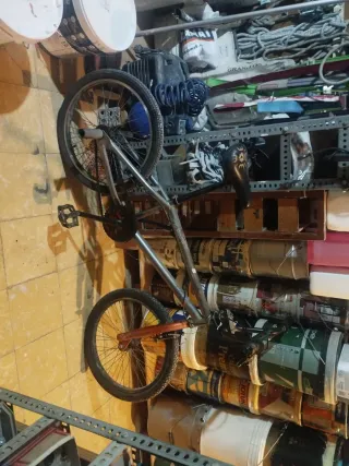 Bicicleta estilo BMX con un diseño robusto y llamativo. - Cuadro de metal plateado. - Ruedas de 20 pulgadas. - Pedales negros. - Manillar con puños negros. La bicicleta las comprado muy cara pero la dejo a este precio, no puedo bajarlo más, está en muy buen estado y no tiene defectos en nada de la bici.