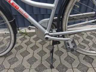 Bicicleta urbana Kettler City Cruiser en color plata. Ideal para desplazamientos diarios. - Cuadro de aluminio. - Ruedas de 28 pulgadas. - Portaequipajes trasero. - Guardabarros. - Pata de cabra. 6 velocidades Calidad aleman