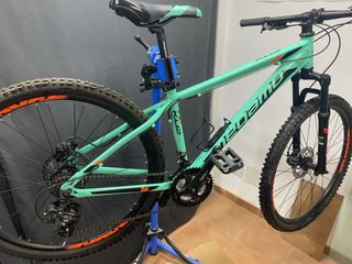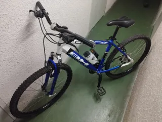 Bicicleta de montaña con cuadro de aluminio y ruedas de 26 pulgadas. - Cuadro de aluminio ligero. - Ruedas de 26 pulgadas. - Diseño deportivo. - Ideal para todo tipo de terrenos. - Suspensión delantera. - Cambios de botón, en perfecto estado - Frenos y ruedas en buen estado. La bici esta lista para usar. Como se e en las fotos tiene algunos roces típicos del uso, puramente estéticos. De mecánica está perfecta, revisada y al día. Mejor ver.