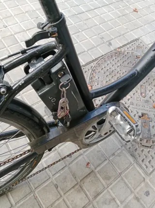 Ideal para moverse por Barcelona, ir al trabajo o pasear sin esfuerzo. Funciona perfectamente, batería con muy buena autonomía y siempre guardada en interior. Características: Ruedas 26” Motor eléctrico potente y silencioso Pantalla LCD con velocidad, batería y modos de asistencia Varias asistencias al pedaleo Frenos de disco delanteros y traseros Suspensión delantera Portaequipajes trasero Guardabarros delantero y trasero Luz delantera Caballete Soporte para móvil Batería integrada en el cuadro Se entrega con cargador original Factura incluida Estado muy bueno, sin golpes importantes y lista para usar desde el primer día.