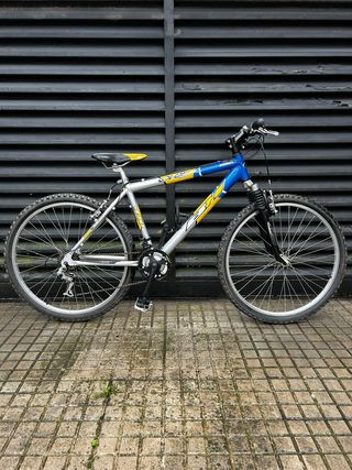 MTB clásica BH Supra 100 de los años 90 con cuadro de acero y ruedas de 26”. Transmisión Shimano con triple plato, robusta y cómoda para ciudad o caminos. Tamaño del cuadro: aprox. 17–18” (talla M) Altura recomendada: 165–180 cm Buen estado general con marcas normales de uso. Sillín con pequeño rasgado. Ideal para uso diario o para proyecto restomod/MTB vintage. Trek, Kona, Specialized Rockhopper, Diamondback, Cannondale, GT, Avalanche