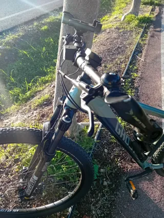 Bicicleta de montaña en color negro. - Cuadro de aluminio. - Ruedas todoterreno. - Frenos manuales. - Luz trasera y posible luz delantera. - 22`` tamaño para nino/a