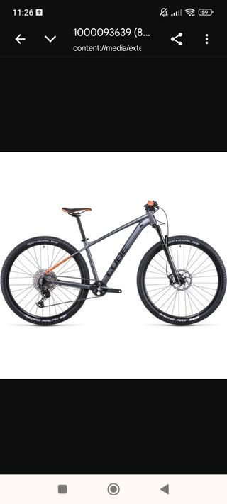 Bicicleta de montaña Cube Reaction Pro 22 (Comprada en Enero de 23) en color gris oscuro con detalles en naranja. - Cuadro de aluminio. - Ruedas de 29 pulgadas. - Shimano Deore XT. -Monoplato. -Horquilla Rockshox Judy 100mm. -Frenos Shimano. Está al día de todo, rueda delantera con Fundax y trasera con líquido anti pinchazos. - Se entrega con pedales normales. - Se entrega con el sillín de origen (sin estrenar). - Se entrega sin cuernos, sin luces, sin soporte de móvil, sin portabidones, sin bolsa para herramientas y sin Garmin. - La vendo por cambio a doble suspension. Se entrega como en la imagen de portada.