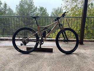 Bicicleta doble suspension xco - Cuadro de carbono. - Suspensión delantera y trasera Fox Kasima 120mm bloqueo dos posiciones - Frenos de disco Shimano XT - Grupo Shimano XT - Tija telescopica Transfer X - Ruedas Maxxis y Pirelli. - Protecciones tanparentes en el cuadro