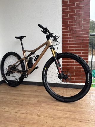 Bicicleta GT Force modelo 2024 en color beige. Lista para la acción. - Cuadro de carbono GT force. - Suspensiones cambiadas en noviembre 2024. Fox factory 38 170mm y fox factory dhx 230x65mm. - Tija telescópica GT. - Potencia El Gallo. - Frenos TRP Slate t4. - Pedales Supacaz Orbitron. - Sillin Massi Raptor. - Rueda trasera con nube, neumático delantero maxxis nuevo.