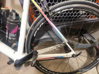 Bicicleta de carretera Fuji SL Caja Rural talla 58. - Cuadro de carbono. - Cambio electrónico Shimano Ultegra Di2 FC6800. - Bielas 175mm. - Platos 50x34. - Cassette 11-32. - Ruedas de carbono Mavic Cosmic SL 40 compradas en 2023. - Zapatas delanteras y cubierta delantera nuevas. Zapatas traseras y cubierta trasera a medio uso. - Pedales shimano. - 7,7kg sin pedales. Está en muy buen estado. Mejor ver en persona. Preguntar sin compromiso. Precio negociable.