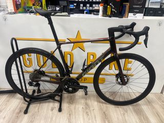 Cuadro,horquilla y tija carbono, manillar carbono vision,potencia easton carbono, ruedas visión carbono 40, grupo Sram Force AXS electrónico,sillín fizik, porta bidones Mérida 16g carbono, TALLA S/M