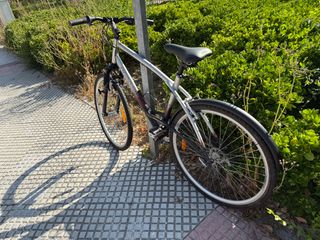 Bicicleta Decathlon modelo Triban Trail, ideal para paseos y rutas. - Cuadro de aluminio. - Suspensión delantera. - Frenos de disco.