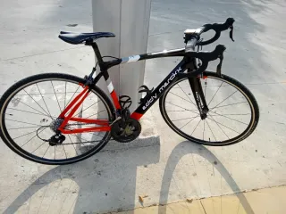 Bicicleta de carretera con un diseño llamativo en rojo y negro.perfeta para rodar montada en Shimano ultegra,funciona perfectamente - Cuadro de aluminio. - Ruedas mavic cosmic - .horqyilla de carbono.