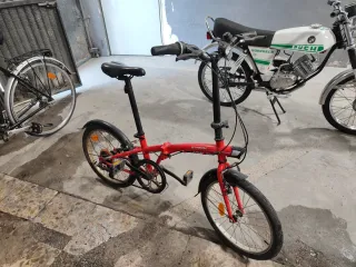 Bicicleta plegable de color rojo. - Cuadro de metal. - Ruedas de 20 pulgadas. - Sillín ajustable. - Guardabarros delantero y trasero.