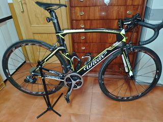 Bicicleta de carretera Wilier Cento 1 Air. Talla 54. (yo mido 1,80) - Cuadro de carbono. (Tiene una pequeña fisura reparable-ver foto-) - Ruedas de perfil de carbono sscar. - Manillar y tija de carbono. - Cambio electrónico Shimano di2 11 velocidades - frenos-platos y bielas durace - manetas ultegra.