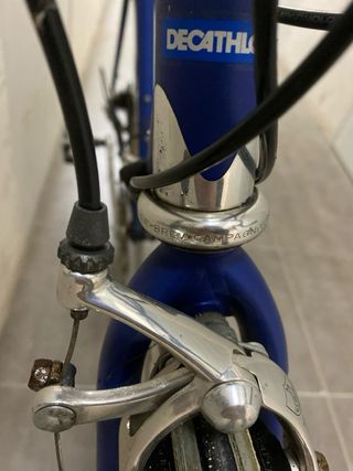 Bicicleta de carretera Decathlon Cobra 560. - Cuadro azul. - Manillar con cinta amarilla y azul. - Ruedas de carretera. La bicicleta se conserva con todos sus componentes originales, ideal para coleccionistas o para quien quiera una bici de carretera clásica, dura y con estilo. Negociable bicicleta #ciclismo #carretera #vintage #retro #decathlon #cobra #roadbike #bici #ciclismocarretera #restauracion #shimano #campagnolo #oportunidad #gravel