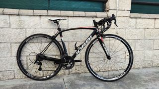 Bicicleta de carretera Jorbi con cuadro completo de carbono. Montada actualmente con desarrollo de escuelas alevín 46x16, se puede incluir bielas originales FSA y piñon 11-27. - Cuadro de carbono completo - Grupo Centaur 11 velocidades - Ruedas de aluminio ligero Cero AR30 casette Campagnolo 16-28 neumáticos Bontrager. - Tija de carbono. Adicionalmente se puede añadir a mayores ruedas de carbono Vision Trimax 35 con buje Shimano 11v y banda de frenado de aluminio. También se podría añadir cassette con desarrollo escuelas 16-27. Preferiblemente venta en persona o entrega en población de posible desplazamiento para carreras de CyL.