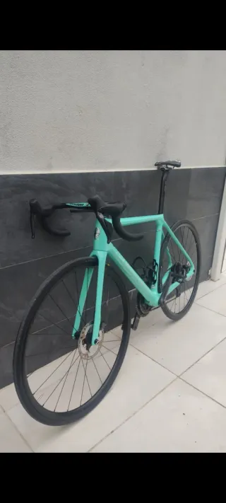 Bicicleta de carretera Bianchi Specialissima en talla M. Un modelo icónico de la marca italiana. - Cuadro de carbono. - Color verde menta. - Manillar visión metron 38cm de ancho con potencia integrada de 90 - Ruedas fulcrum aluminio (opcional ruedas de carbono +250€) - Tija de carbono FSA muy ligera - ATENCIÓN -> Grupo completo sram force (no en las fotos) - Sillín prólogo - Muy cuidada sin ninguna caída, con signos normales de uso. - Opción de venta solo cuadro+manillar+tija - Precio negociable - Acepto cambios por bici de gravel de valor similar.