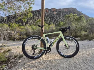 Bicicleta de gravel Felt Breed 30 en talla L. Ideal para explorar caminos y senderos. - Cuadro de aluminio ligero. - Transmisión Shimano GRX - Frenos de disco hidráulicos. - Ruedas de carbono csc estado como nueva. mejorada con ruedas carbono csc con rodamientos ceramicos y 45mm Vinilos opcionales zipp 303 regalo pedales, kit bikepacking (bolsa manillar, bolsa cuadro, bolsa sillin grande y bolsas de horquilla con sus soportes , valorado en 140€