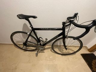 Bicicleta de carretera en color negro. Ideal para paseos, ir a trabajar, sigue en uso - Cuadro de metal. -Revestimiento de pintura del cuadro hecho por mi - Manillar con cinta azul. - Sillín negro. La bici tiene sus años, pero funciona perfectamente, tiene sus cubiertas cambiadas y todo al día, sólo hace falta hinchar las ruedas y rodar. Es muy ligera