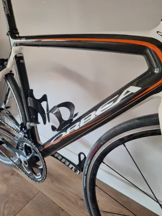 Bicicleta de carretera Orbea de carbono. - talla 54. - Cuadro de carbono. - Diseño deportivo con detalles en naranja. - Ruedas Vittoria Rubino Pro Graphene 2.0. - potencia + tija + bielas carbono. - montada en 105 de 10v.