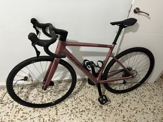 Bicicleta de carretera Liv Aero con un diseño aerodinámico. - Cuadro y horquilla de carbono. - Frenos de disco. - Ruedas de perfil. Se entrega con factura, comprada en febrero 2024, apenas tiene kilómetros por una caída que tuve y de ahí los rasguños que se ven en el cuadro y cambio que no repercute en nada al funcionamiento. Líquido de ruedas recién renovado. Se entrega con el caballete