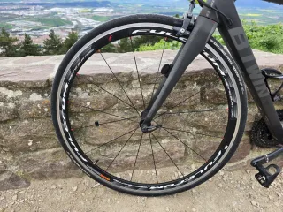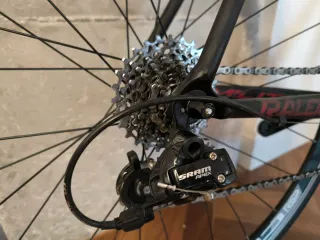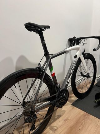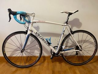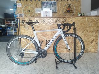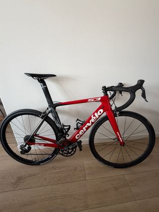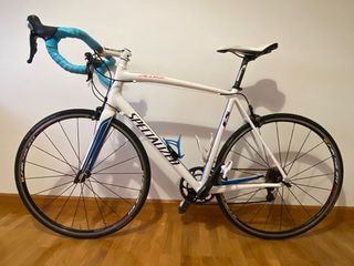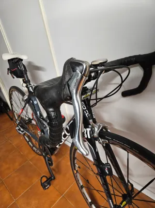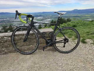 Bicicleta de carretera Cervelo S3 de carbono con transmisión electrónica Shimano Di2 de 11 velocidades y frenos de zapata. - Cuadro y horquilla de carbono. - Grupo Shimano Di2 de 11 velocidades. - Frenos de zapata. - Ruedas de perfil trasera progress carbono de 38 de perfil y adelante dt swiss pr1400 dicut de aluminio de 32 de perfil La bici funciona prefectamente,ideal para iniciarse con una bici con unos 12 años pero de alta gama,muy ligera. Tiene cambio electrónico,la entrego con dos baterias y su cargador. Tiene algun desperfecto(ver fotos)como es logico con los años que tiene,solo es estetico,la bici va genial