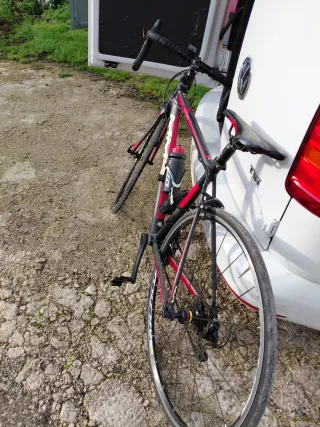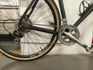 Bicicleta de gravel con cuadro de ciclocross en color negro. El cuadro es un cuadro de aluminio pintado en negro. Grupo Shimano 105 mecánico de 9 velocidades 11-32. Horquilla,tija y potencia de carbono. Ruedas DT Swiss 460 de aluminio, robustas y fiables. Cubiertas Vittoria Terreno tubelizadas de 40 con apenas 500km ( El paso de rueda acepta 42-44) Platos 46-36. Talla 54 ( M). Mantenimiento y cuidados al día. Limpieza de cadena y casette tras cada salida. Ha sido mi bicicleta de bikepacking con la que he ido muy cómodo. Pedalex XT y adaptador Garmin del manillar incluidos. Y excelente opción.