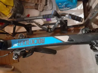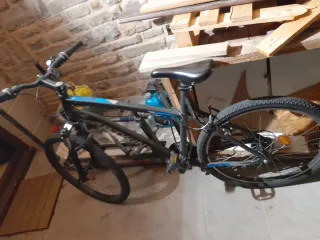 Bicicleta Rockrider ST100 de 27.5 pulgadas talla L en excelente estado. Lista para rodar. - Cuadro de aluminio. - Suspensión delantera. - Cambio de marchas 3x7= 21 velocidades Casi sin usar. Funciona todo perfectamente. La compré para que mi hijo hiciera un tramo del Camino de Santiago con un amigo, pero no lo hicieron. La vendemos porque no la usamos (usa una de carretera).