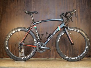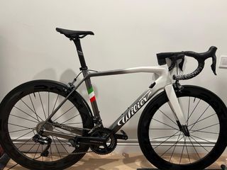 Bicicleta muy ligera, rígida y cómoda, ideal tanto para entrenar como para marchas o competición. El cambio electrónico Di2 funciona perfecto, preciso y silencioso. Montaje equilibrado de gama alta, con una estética muy cuidada. Características • Marca / Modelo: Wilier Triestina • Cuadro: Carbono • Talla: M • Grupo: Shimano Ultegra Di2 electrónico • Manetas: Dura-Ace • Ruedas: Rothar de carbono y alto perfil • Transmisión y frenos en perfecto estado