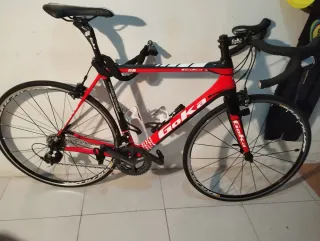 Bicicleta de carretera GoKa R8 con cuadro de carbono. - Cuadro de carbono. - Color rojo y negro. - Incluye portabidones. -pedalier utegra. -Talla L. -regalo rodillo,dos ruedas adicionales y zapatos de la talla 46. Se puede quedar para verla. Cualquier duda me puedes llamar sin compromiso 666639162 Emilio.