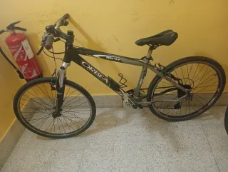 Bicicleta de ruta con cuadro de aluminio. -Marca ORUS generica Carrefour - Componentes Shimano Tourney. - Manillar de carretera. -Se encuentra con uso tiene rayones en el marco y hace falta alinear rueda trasera, por otra parte funciona bien, se vende por no usarla. !!PRECIO NEGOCIABLE!!
