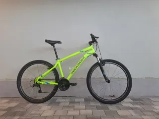Bicicleta de montaña Rockrider en color verde neón, ideal para tus aventuras al aire libre. - Talla L - Cuadro de aluminio ligero. - Ruedas de 27,5 pulgadas. - Suspensión delantera.