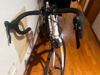 Bicicleta de carretera Triban RC 120 con cuadro de aluminio. - Cuadro de aluminio ligero. - Diseño deportivo y aerodinámico. - Frenos de disco. - Ruedas de 700c. Comprada el 14 de junio de 2025 (Tengo factura)