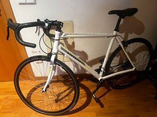 Bicicleta de carretera en buen estado, lista para rodar. - Cuadro blanco con detalles negros. - Ruedas de carretera. - Incluye portabidón.