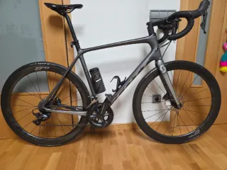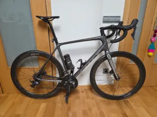 Bicicleta de carretera de carbono Berria Belador Talla M (gris mate) - Cuadro de carbono ligero. - Ruedas de carbono Spinergy perfil 50 - Manillar de carretera avant y potencia zipp carbono con soporte Garmin. - Gupo electrónico Sram Rival AXS (48-35T) x (10-36) - Potenciómetro integrado - Frenos de disco. - Pedales look keo Blade carbón - Cubiertas Vittoria Corsa Pro (prácticamente nuevas)