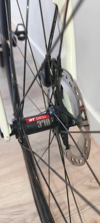 Bicicleta de carretera con un diseño elegante en color blanco. - Cuadro de carbono. - Frenos de disco. - Ruedas de perfil. Precio negociable.