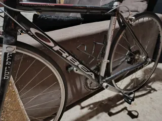 Bicicleta de carretera Orbea - Talla 51 - Cuadro y horquilla de carbono (ligera y cómoda) - Grupo Shimano: frenos, cambio y desviador Shimano 105 groupset - Bielas Shimano Tiagra crankset 50/34 - Pedales LOOK KEO - Calas Shimano Tiagra cleats - Cables y fundas funcionan bien, sin óxido - Rodamientos de la dirección en buen estado y sin holgura. Con casco HJC y sillín Selle Italia. Bicicleta de calidad, material carbono, fabricada en España. Ideal para continuar entrenando con una bici de carbono fiable. Se puede ver y probar sin compromiso.