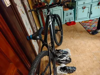 Bicicleta de montaña con cuadro de fibra de carbono y ruedas grandes. - Cuadro de fibra de carbono. - Ruedas de gran tamaño.