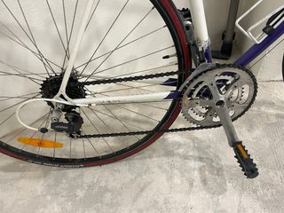 ✅ Bici de 2ª mano reacondicionada ✅ Imágenes propias y reales de la bicicleta, no de catálogo ✅ Garantía 1 año + 1 año opcional ✅ A plazos desde 27,76€ / mes sin intereses ✅ Envío a toda España. ¡Pregúntanos! ▪️Cuadro: Aluminio ▪️Tamaño de la rueda: 700 ▪️Material de la rueda: Aluminio ▪️Cambio: Shimano Sora ▪️Tipo de cambio: Mecánico ▪️Velocidades: 9 ▪️Cassette: 11-34-T ▪️Mandos de cambio: Shimano Sora ▪️Bielas: Shimano ▪️Platos: 50-34-T ▪️Frenos: Tektro ▪️Ruedas: Syncros Race ▪️Material de la potencia: Aluminio ▪️Manillar: Aluminio ▪️Tija: Aluminio