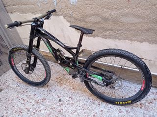 Bicicleta de descenso lista para la acción. - Cuadro robusto de aluminio - Suspensión delantera de alta gama. Rock fox totem 40mm. Suspensión central Rock fox mecanic de muelle y aire- Frenos de disco nuevo delantera con una sola salida Shimano 201. Frenos trasero marzochi - Ruedas todoterreno mixta delantera maxxi minions al 60℅ y trasera Micheline rocket nuevas con una salida. Esta toda ajustada, y sus pensiones revisadasyl ajustadas a 75kg. Escucho ofertas