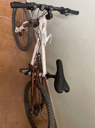 Bicicleta de montaña de color blanco, ideal para paseos y rutas. - Cuadro de aluminio. - Ruedas de 26 pulgadas. - Suspensión delantera. - Frenos de disco.
