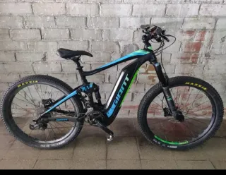 🚲 Giant Trance X 5– Doble suspensión – 26” Características: * Ruedas de 26 pulgadas * Doble suspensión (delantera y trasera) * Cuadro de aluminio Giant * Cambio de marchas con triple plato * Frenos de disco *Cambio shimano SLX *Suspensión rocshok delantera bloquable *Suspensión giant pivot trasera ajustable Extras: Pedales de plataforma y puños La bici funciona perfecto y se puede usar sin problema. Tiene típicos signos de uso de una bici de montaña pero esta muy bien. Lo único que a veces al frenar suenan un poco ya que están algo contaminados, cosa que no afecta en nada frenan a la perfección. Cualquier duda contactar