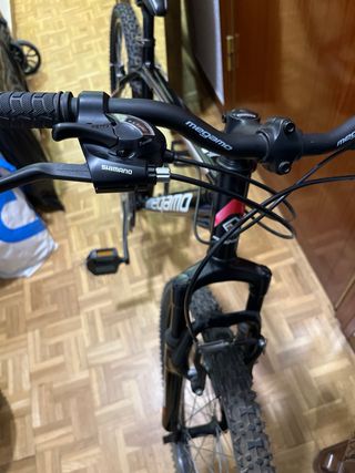 Poco uso Caracteristicas: • Cuadro de aluminio, Talla L ( ligero y resistente) • Ruedas de 29’’ con llanta de doble pared • 21 velocidades Shimano • Cambio trasero Shimano RD-TZ31A • Desviador delantero Shimano FD-TZ500 •Mandos Shimano TX30 • Piñón de siete coronas FW-28T • Frenos de disco mecánicos delanteros y traseros •Horquilla con suspensión y bloqueo •Kit antipinchazos instalado en ambas ruedas Incluyo: Casco, bidon para agua y funda acolchada para sillin