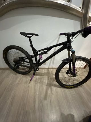 Bicicleta Orbea Rallon en color morado. - Cuadro de carbono talla L - Suspensión delantera y trasera Fox - Frenos de disco hidráulicos. xt 203, delantero nuevo Saint - Ruedas de 29 pulgadas. - Tija telestopica. - Neumáticos prácticamente nuevas