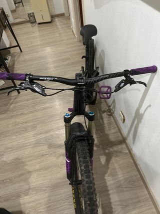 Bicicleta de enduro Mondraker Super Foxy.Talla m - Cuadro de aluminio. - Ruedas de 29 pulgadas dtswiss511. - Frenos de disco hidráulicos sram maven con posibilidad de vender con frenos hope tech 4 e4 por algo mas -tija telescopica -cambio sram gx -cubiertas maxxis assegai y minion dhr - Horquilla rock shock zeb y guardabarros delantero rock shock - Amortiguador trasero fox float dpx2. -manillar renthal fatbar de carbono -posibilidad de entregar con pedales flats o calas shimano Precio algo negociable Se pueden enseñar mas fotos Tiene un pequeño rascazo en la horquilla y vasculante pero no afecta al funcionamiento