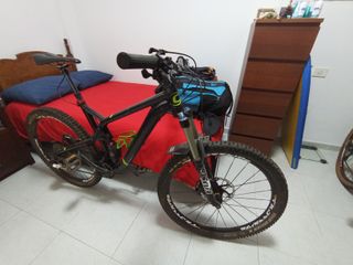 Bicicleta de doble suspensión, ideal para trail y all mountain del año 2017. - Cuadro de color negro de aluminio talla M. - Horquilla delantera fox 32 float de 130mm (reducible a 120mm) y amortiguador trasero rockshok monarch rt3 de 120mm con bloqueo abierto-cerrado y ajustes de rebote. - Ruedas Maxxis que montan liquido tubeles. -tiene toda la transmision deore nueva con desviador slx nuevo. -frenos sram guide r con manetas de metal y tiene unos discos de 200mm montados. Si tienes alguna duda sobre otro componente preguntar sin miedo.